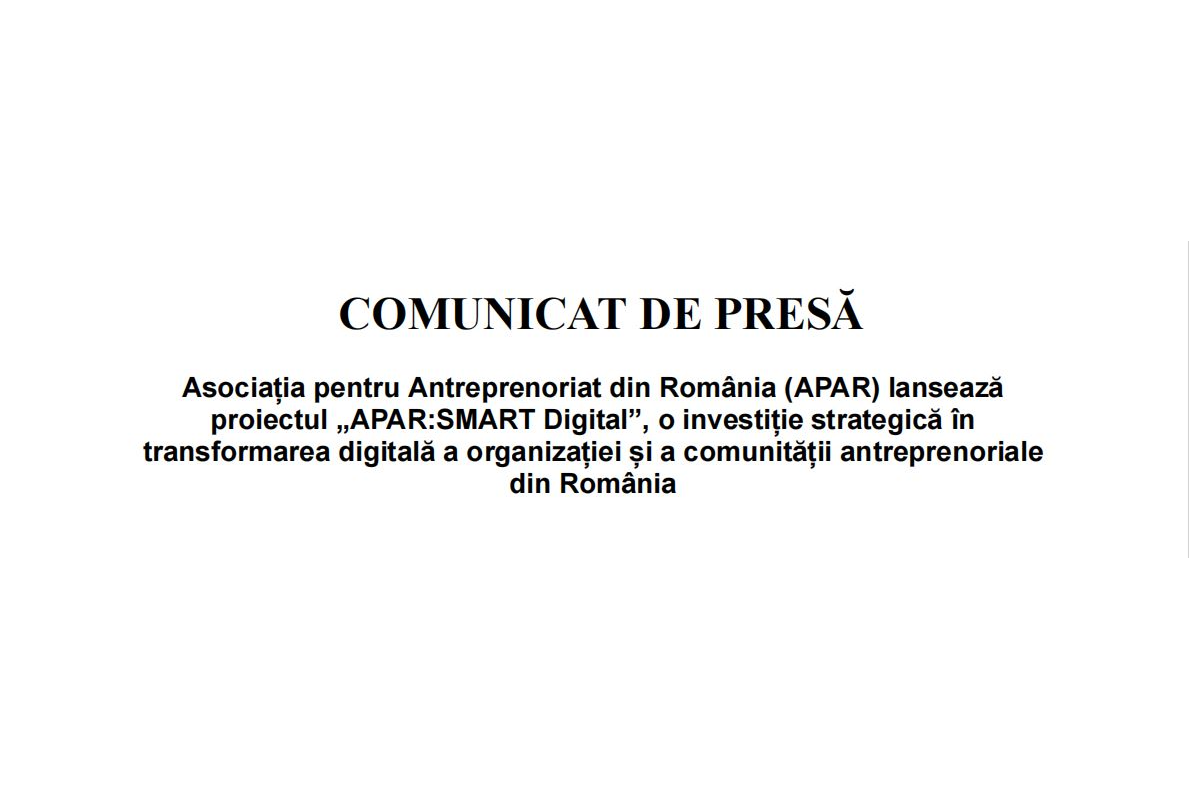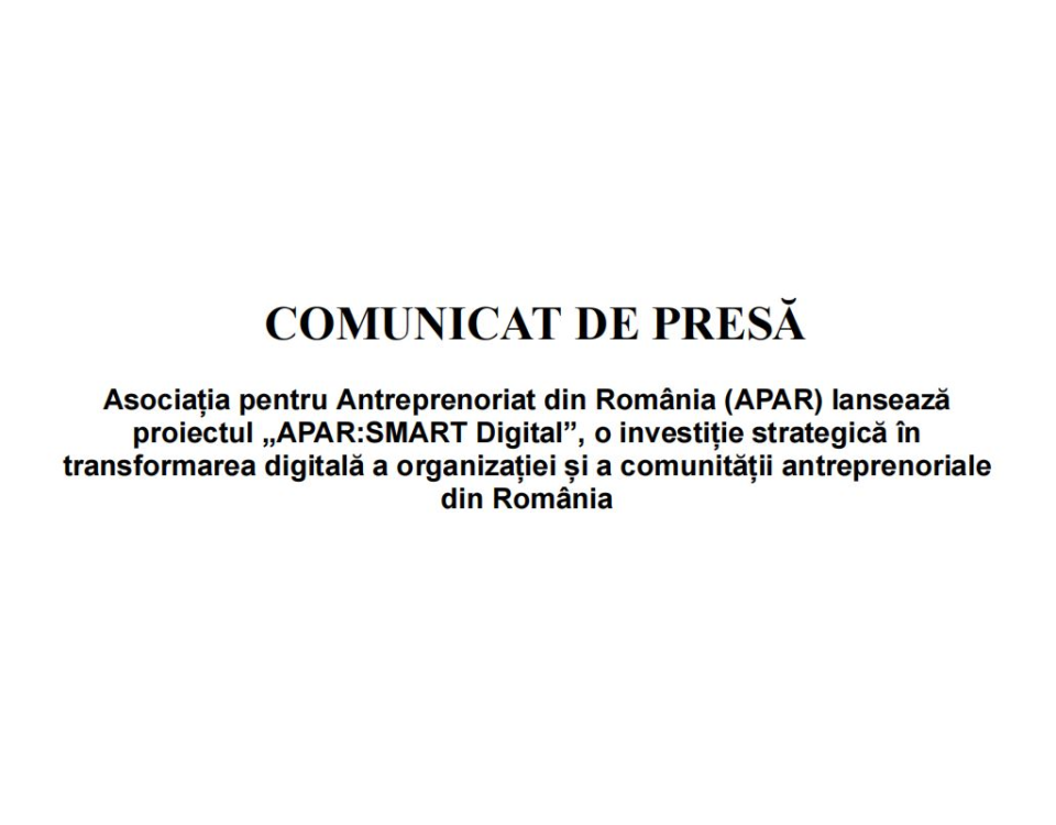 COMUNICAT DE PRESĂ Descarcă aici documentul Asociația pentru Antreprenoriat din România (APAR) lansează proiectul „APAR:SMART Digital”, o investiție strategică în transformarea digitală a organizației și a […]